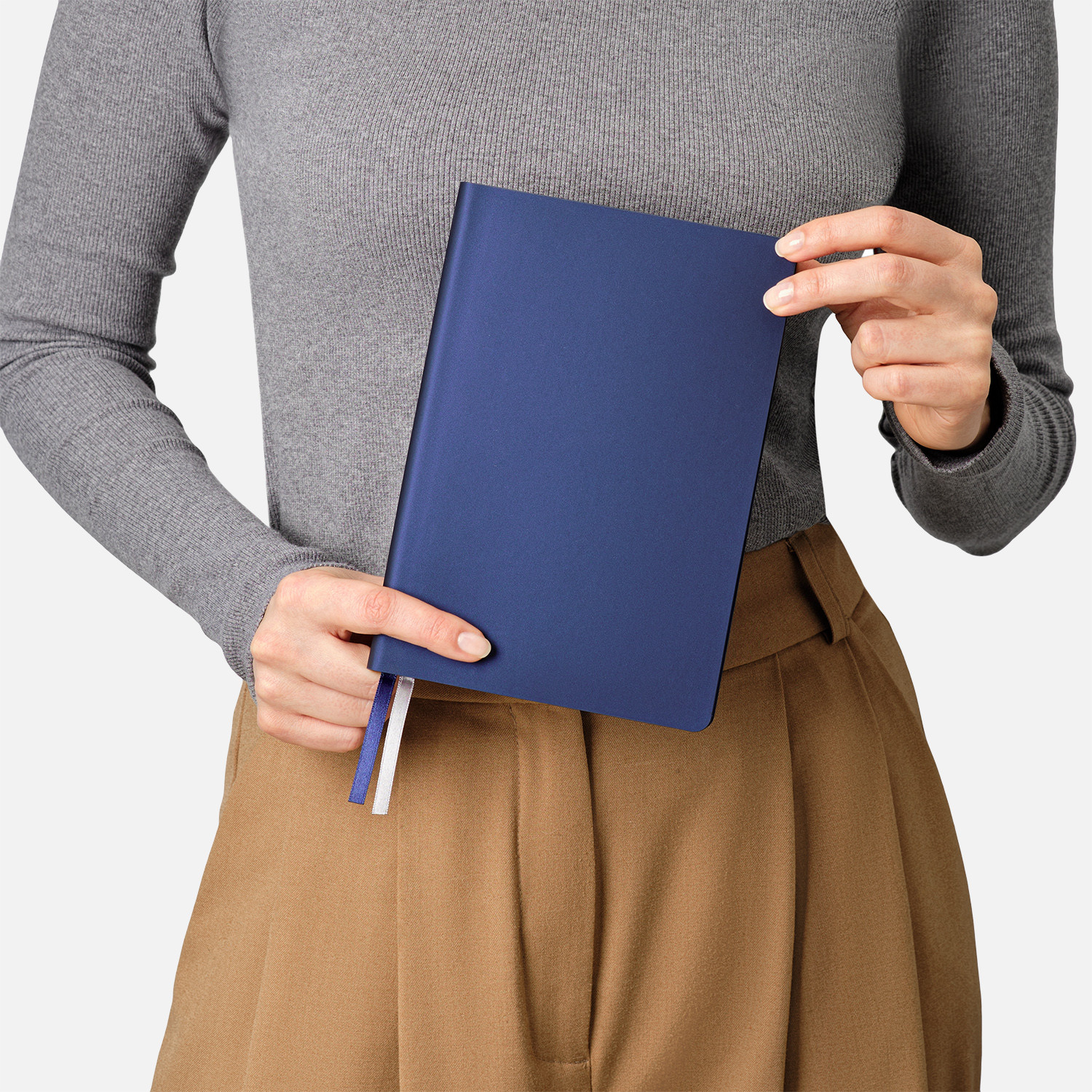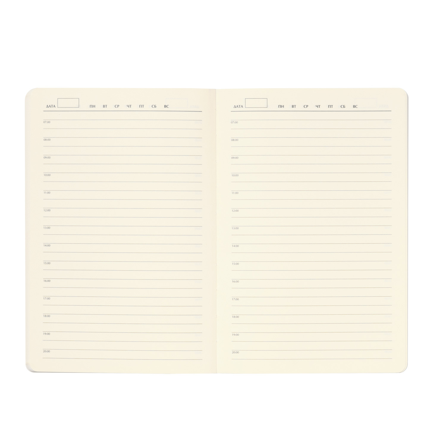 Форзац и нахзац, выполненные в тон обложки, создают гармоничный образ. Гладкие, шелковистые страницы светло-кремового оттенка со скругленными уголками и контрастный матовый серый срез добавляет ежедневнику нотку современности.